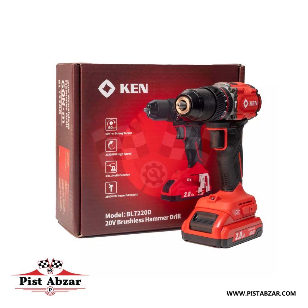 دریل شارژی 20 ولت براشلس کن مدل KEN BL7220D-20C | سبک و قدرتمند برای استفاده حرفهای